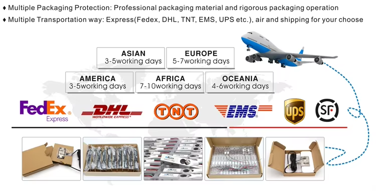 We usually send the parcel by DHL, EMS and TNT etc. The tracking number will be sent to you after delivery. It usually takes 3-5working days to reach from our side to your side, which is very convenient for your businese